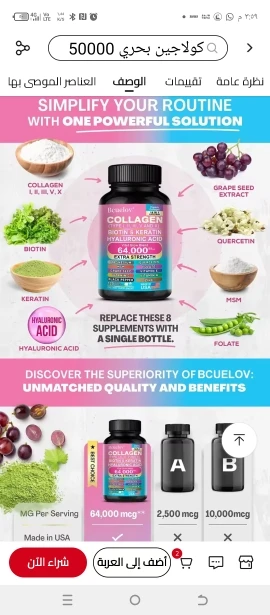 Colágeno Kenofor 1000 mg con biotina 10 000 mcg, queratina, ácido hialurónico, vitamina C, fórmula saludable, suplemento dietético sin gluten.